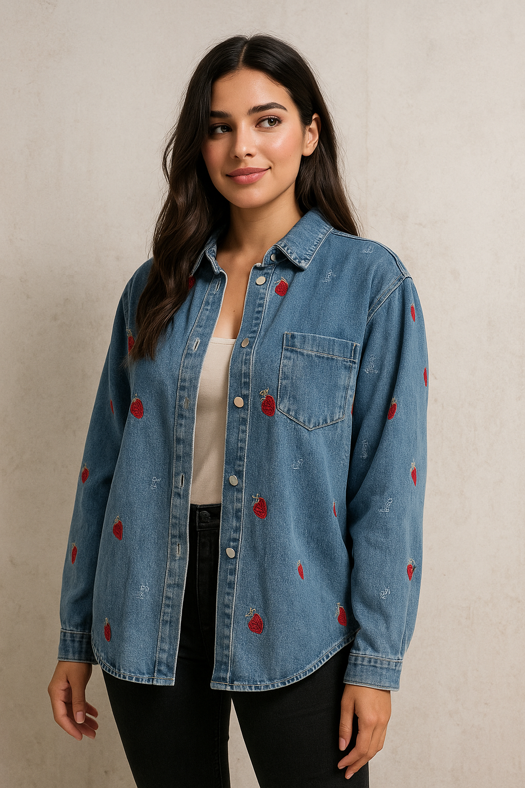 Chaqueta Mezclilla con diseño de fresas