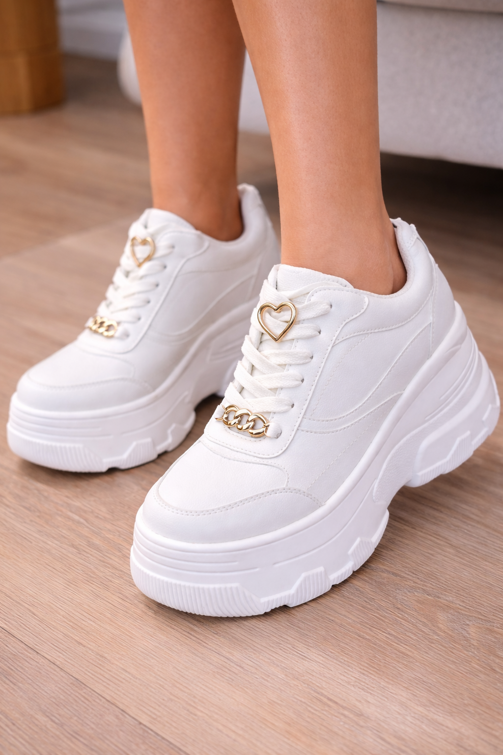 Descubre las Zapatillas de Plataforma Alta 8 Cm para Mujer color blancas, diseñadas para quienes buscan estilo y comodidad en su día a día. Con un exterior de eco cuero resistentes a cualquier ambiente , ofreciendo un acabado elegante y moderno que se adapta a cualquier outfit urbano. El interior acolchado proporciona una experiencia de uso placentera, ideal para largas jornadas. Su suela de goma garantiza un agarre óptimo, permitiéndote caminar con confianza en diversas superficies. Los cordones permiten un ajuste personalizado, asegurando que cada paso sea seguro y cómodo.