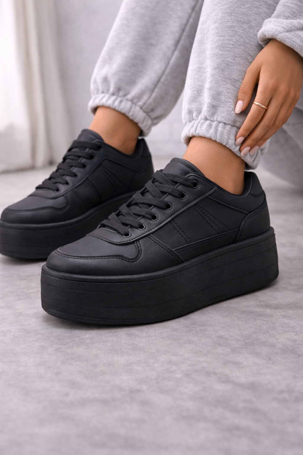Zapatillas estilo Básico color negro eco cuero